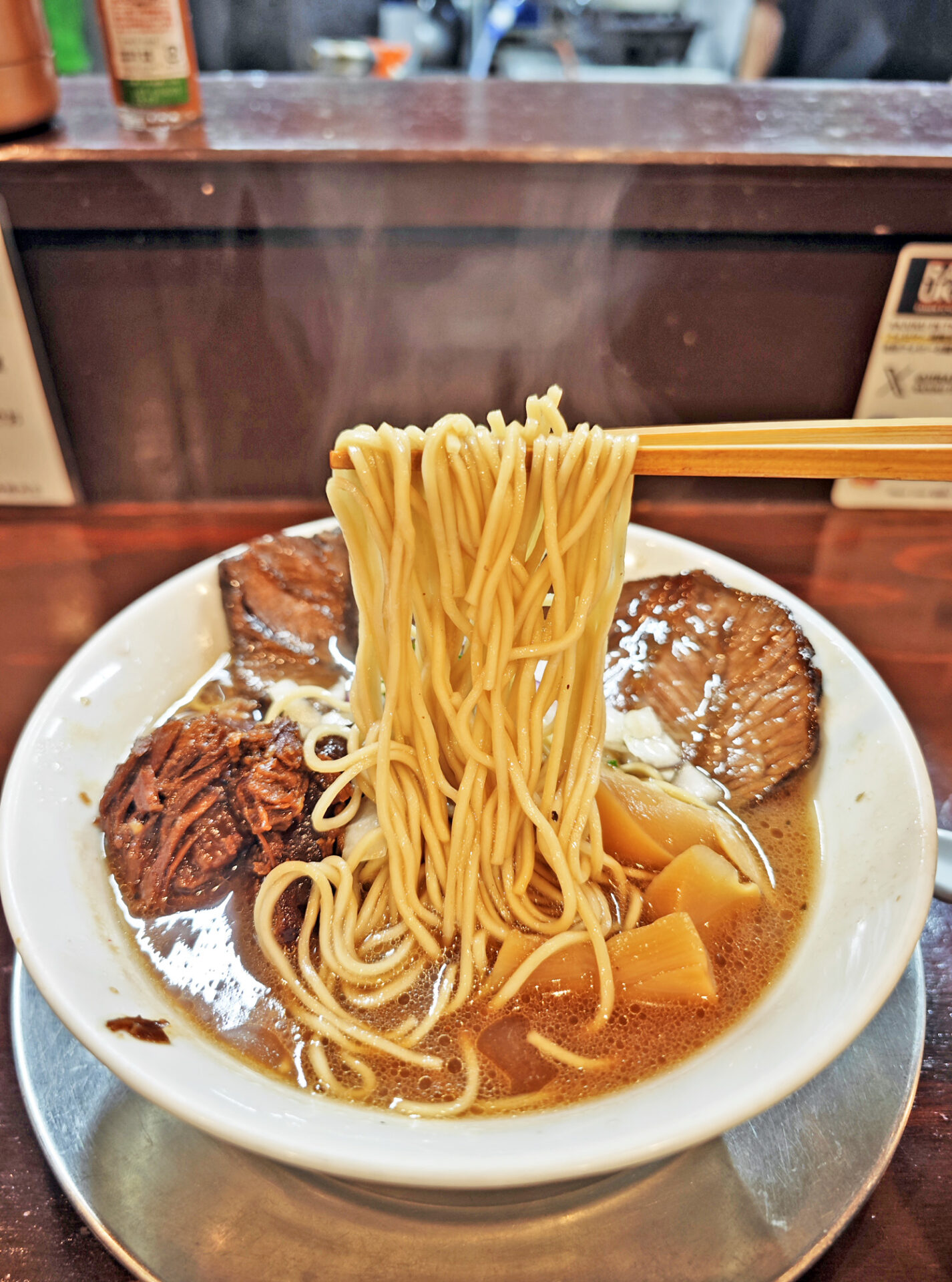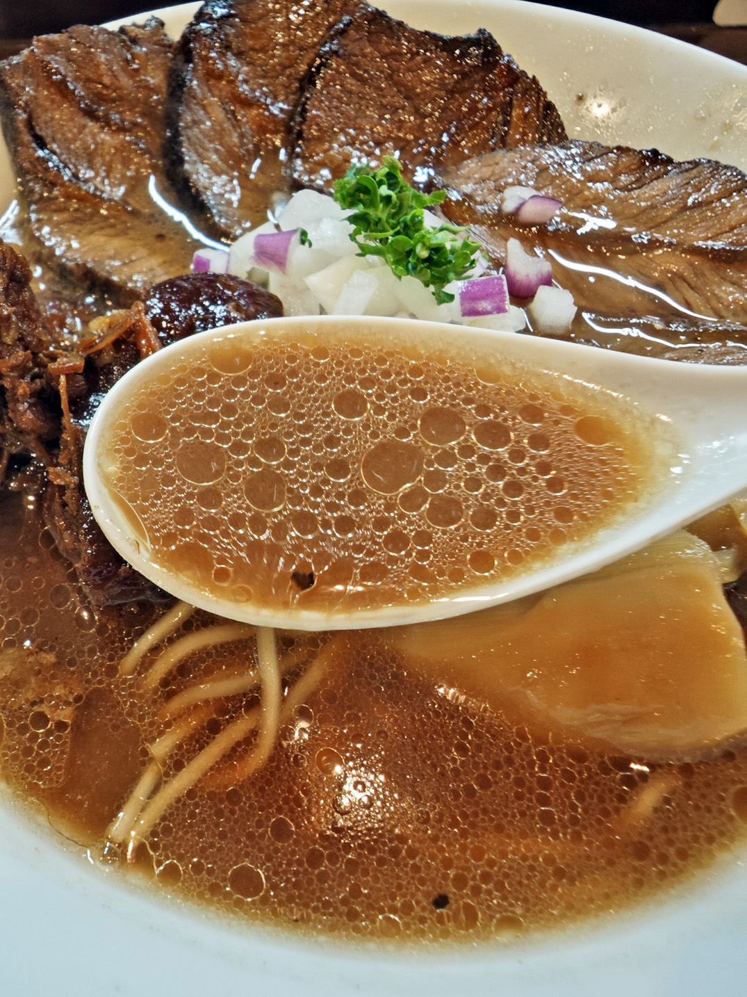 長時間煮込まれたフォンドボーが麺と出会った瞬間・・・