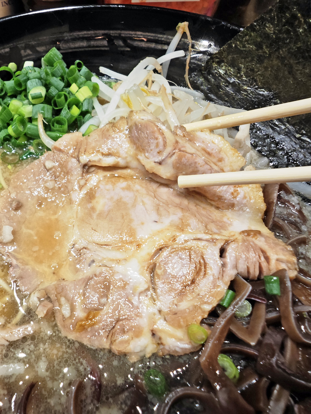 チャーシューは、厚みはありませんが、やわらかくジューシーな味わいです。