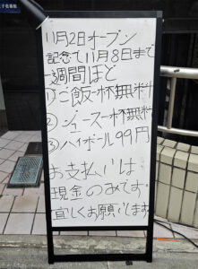 営業時間は、(昼の部)10:00~15:00、(夜の部)16:00~23:30で、当面の間、定休日なしで営業されるそうです。