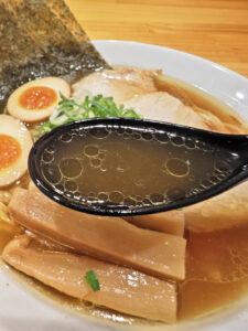 豚骨、鶏ガラ、魚介を使ったスープに、”背脂”の代わりに”鶏油”を浮かべているのだそうです。