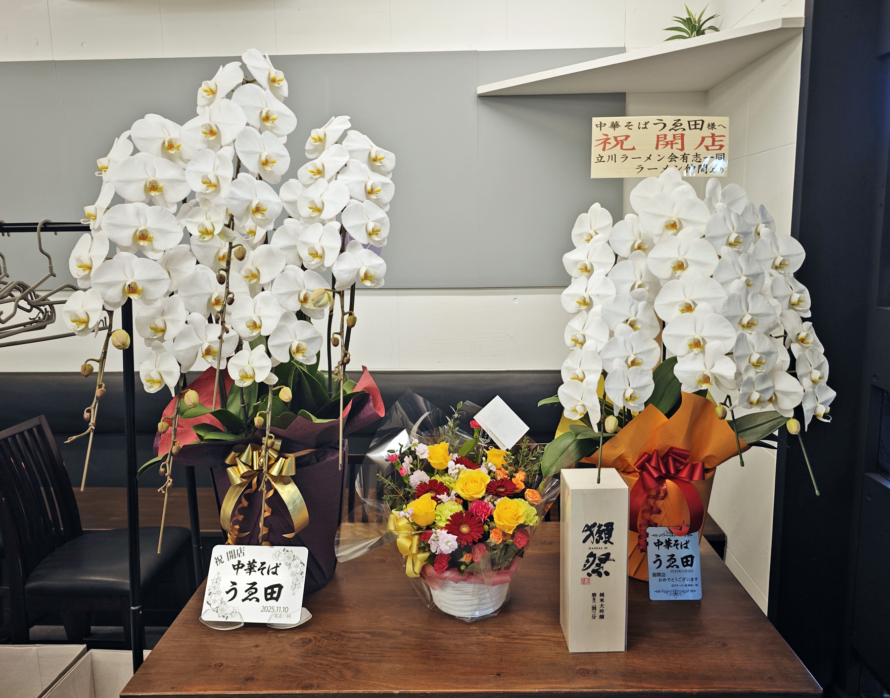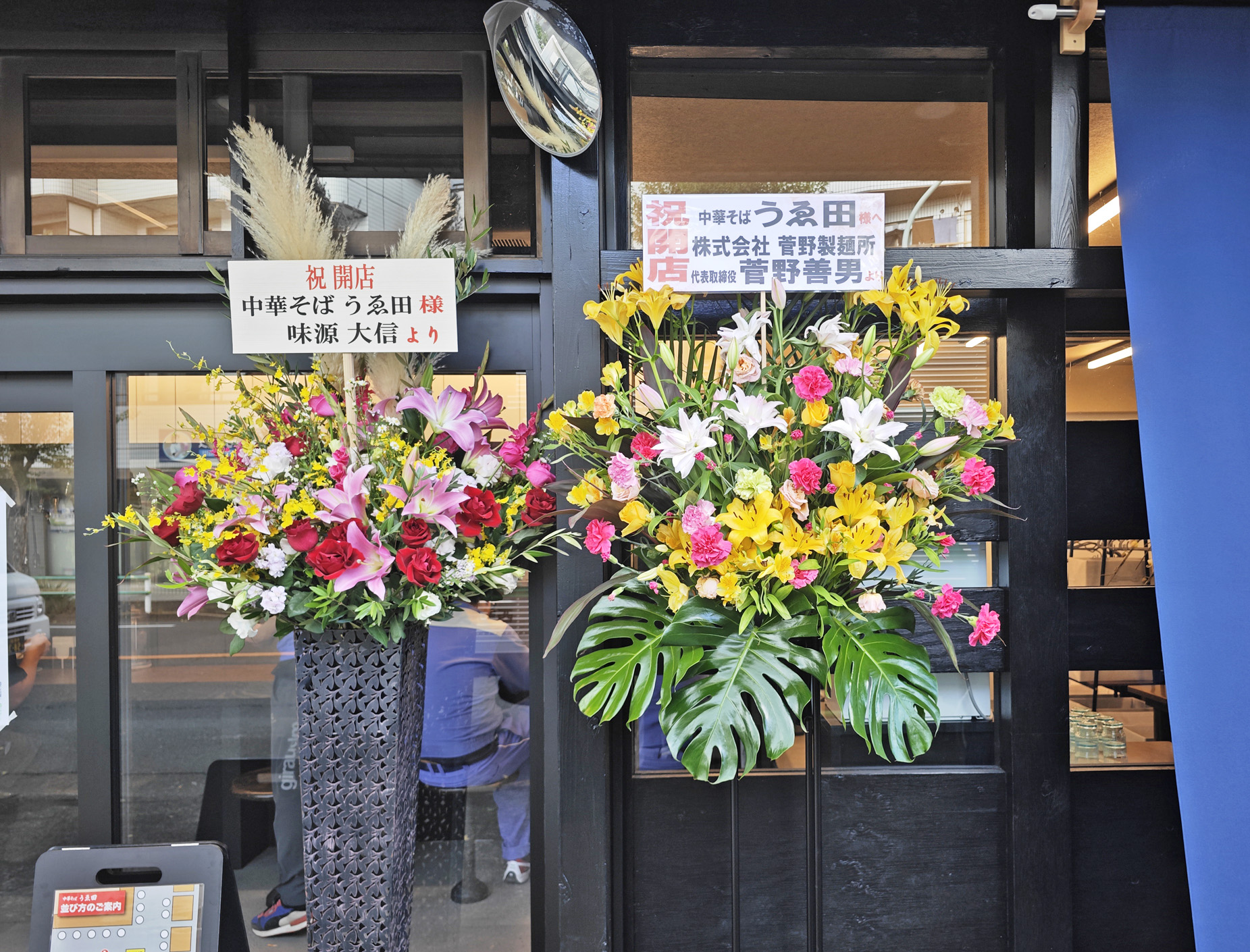 さて、店頭にはオープンをお祝いするお花が飾れています。