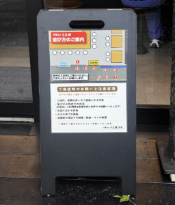 食券は入店時に購入し、店内満席で外に並ぶ際は、図にあるように並んでほしいそうです。