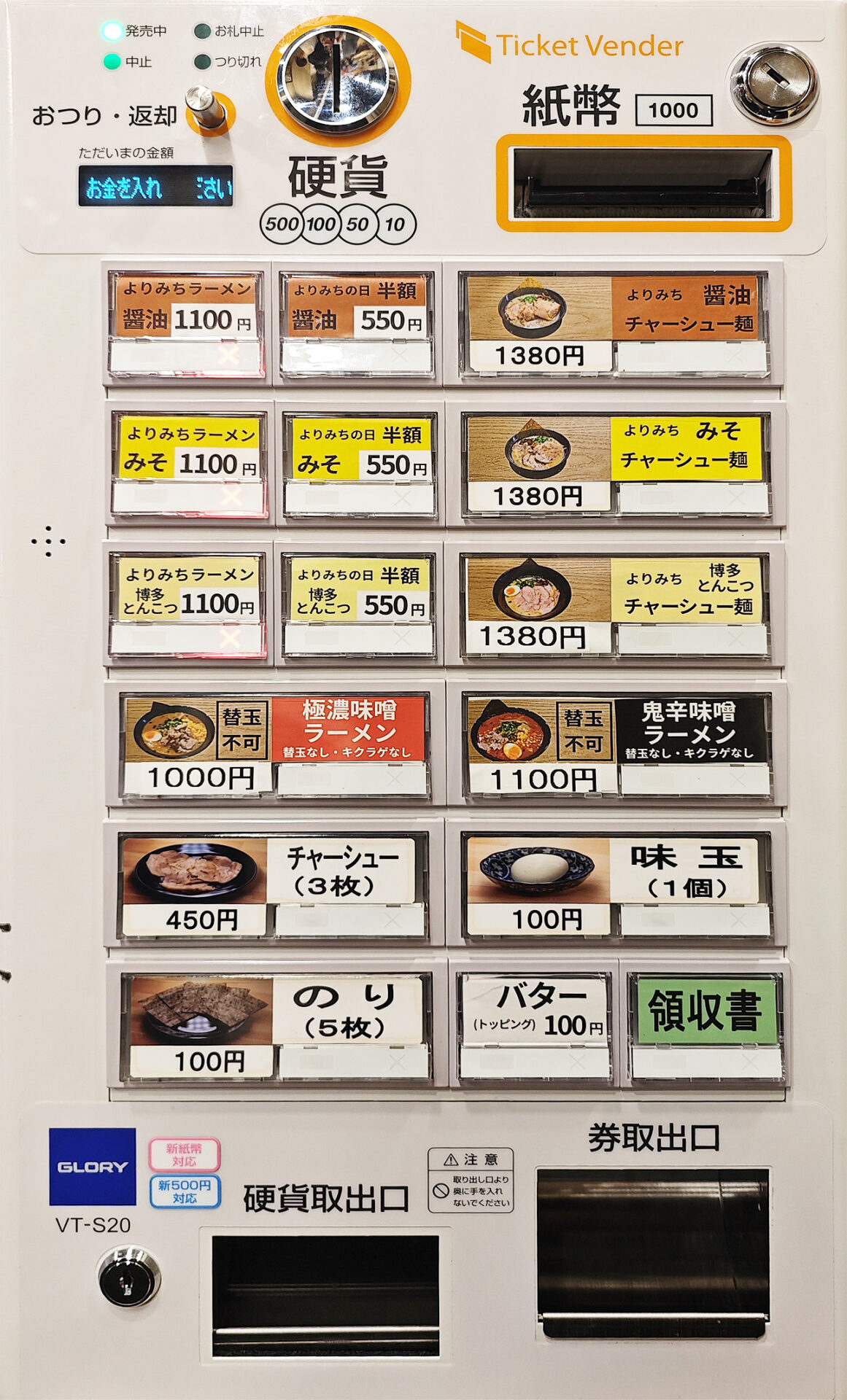 ちなみに、券売機の半額ボタンには”よりみちの日”と記載があるので、今後も半額キャンペーンがあるのかもしれません。