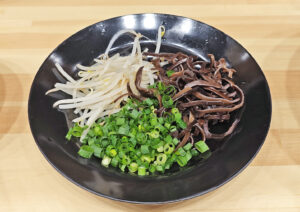 さらっとした味わいで、豚骨の風味はなく、少し甘みがあります。