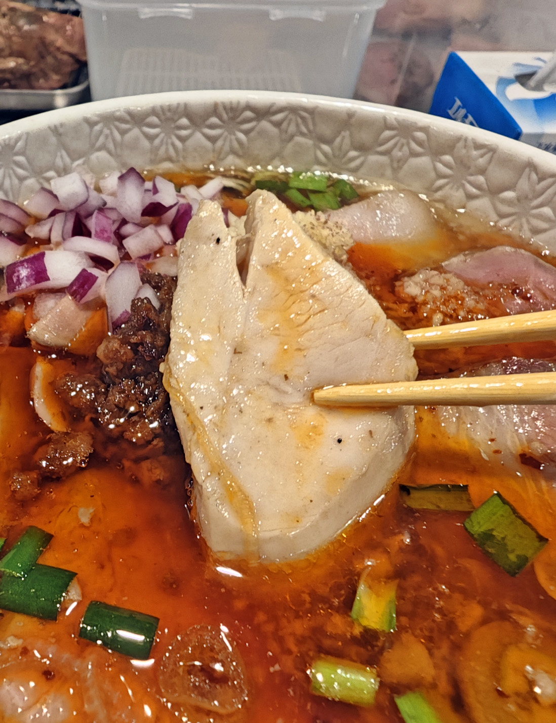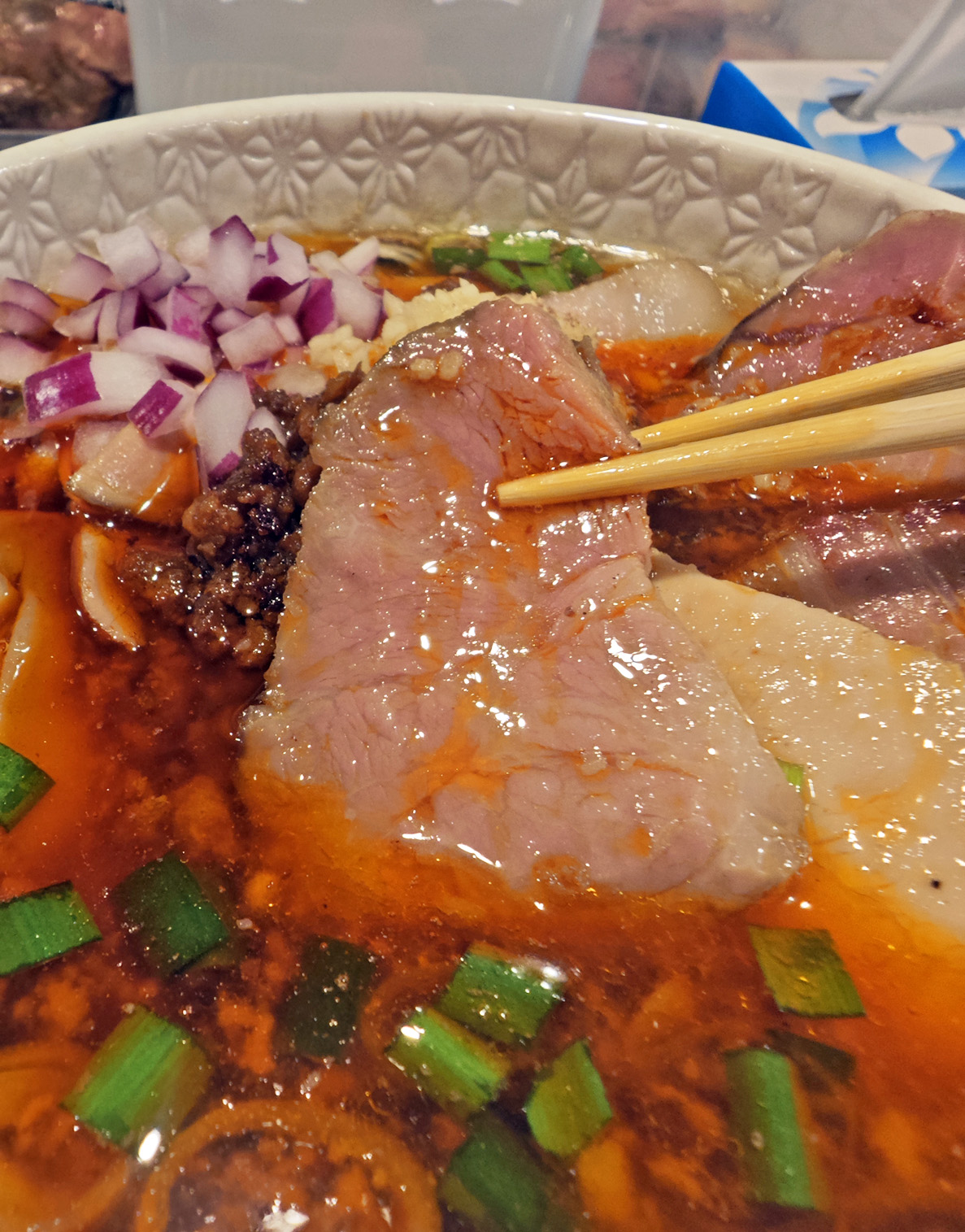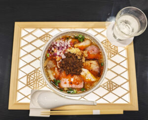 チャーシューの種類は、愛知県産あいぽーくもも、イベリコ豚バラ、桜姫むね肉、アーモンドポーク肩ロースの4種類が乗ってきます。