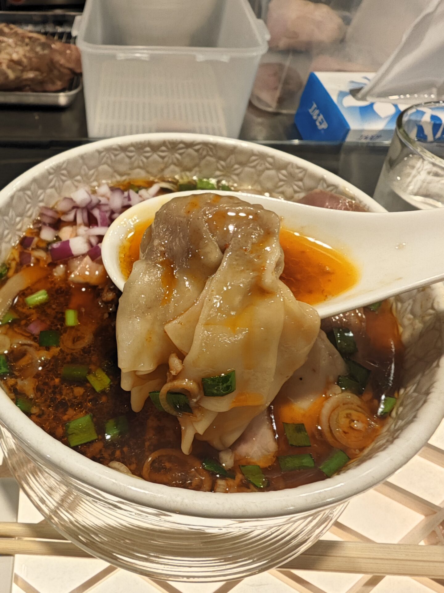 ”特製”にすると、チャーシュー、ワンタンが増えます。