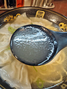 すするたびに、鯛のやさしい香りとワンタンの豊かな旨みが交互に押し寄せ、最後の一滴まで飽きのこない美味しさです。