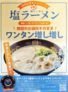すると、偶然にも塩ラーメン1周年記念キャンペーンが実施されていました。