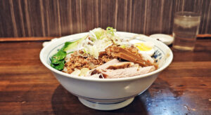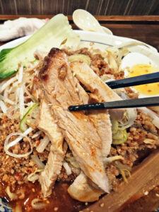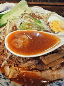 ひとつひとつの味が強く主張しながらも、不思議と一体感があり、麺とよく絡み合って、豪快ながらも満足度の高い味わいを生み出しています。