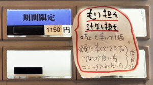 辛くしたい方、汁なしが良い方、ニンニクを入れたい方は、食券を渡す際に、店員さんに伝えてください。