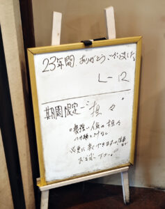 「東池袋大勝軒 八王子店」にて、閉店までのカウントダウンが始まりました。
