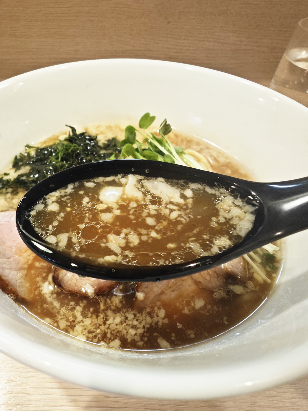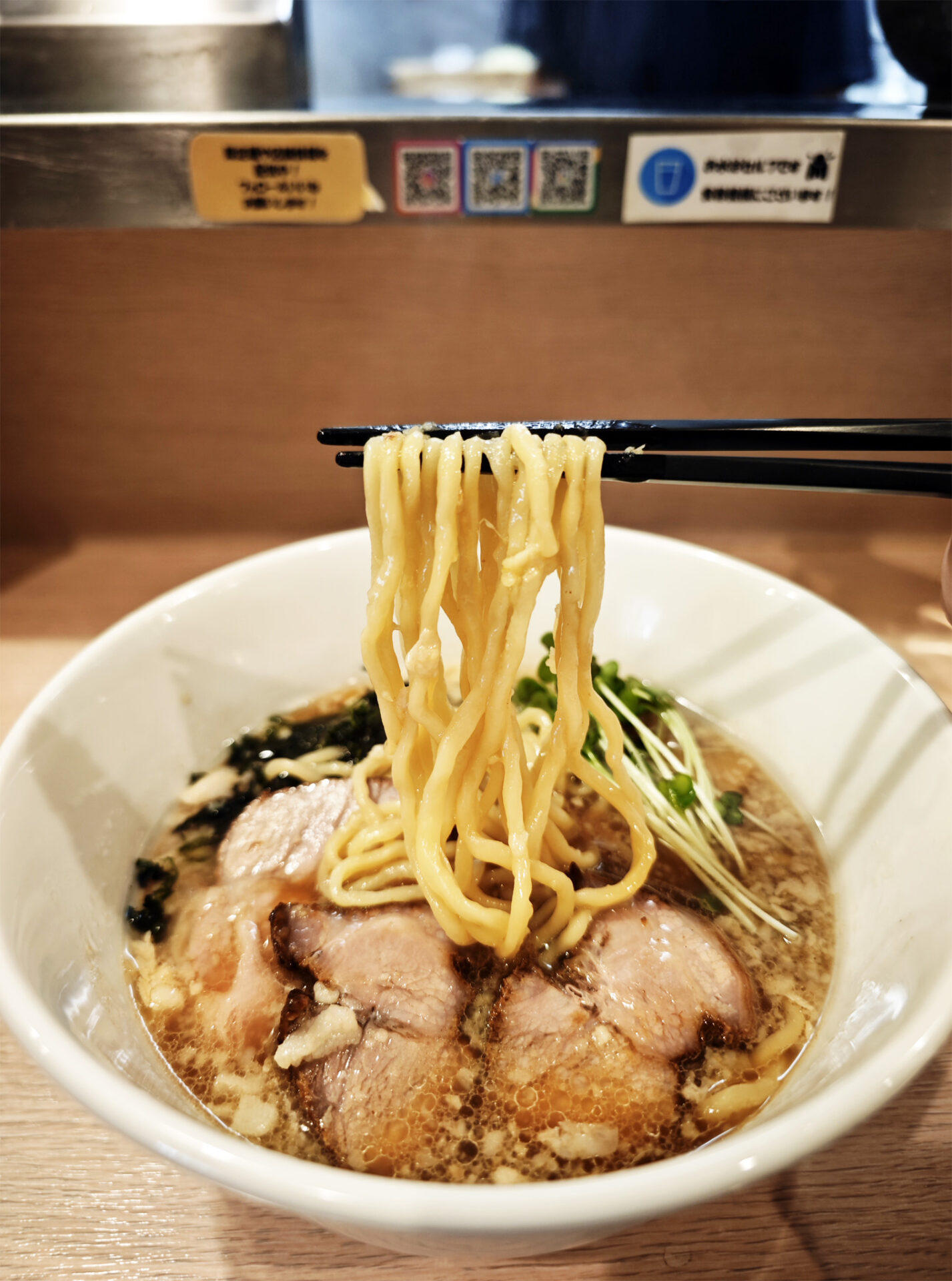 スープを口に含むと、背脂のコクが舌にやさしく絡みながらも、生姜がすっと切り込むように後味を整えてくれます。