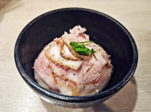 しっとりとした低温調理のチャーシューが何層にも重なり、見た目からして贅沢そのもの。