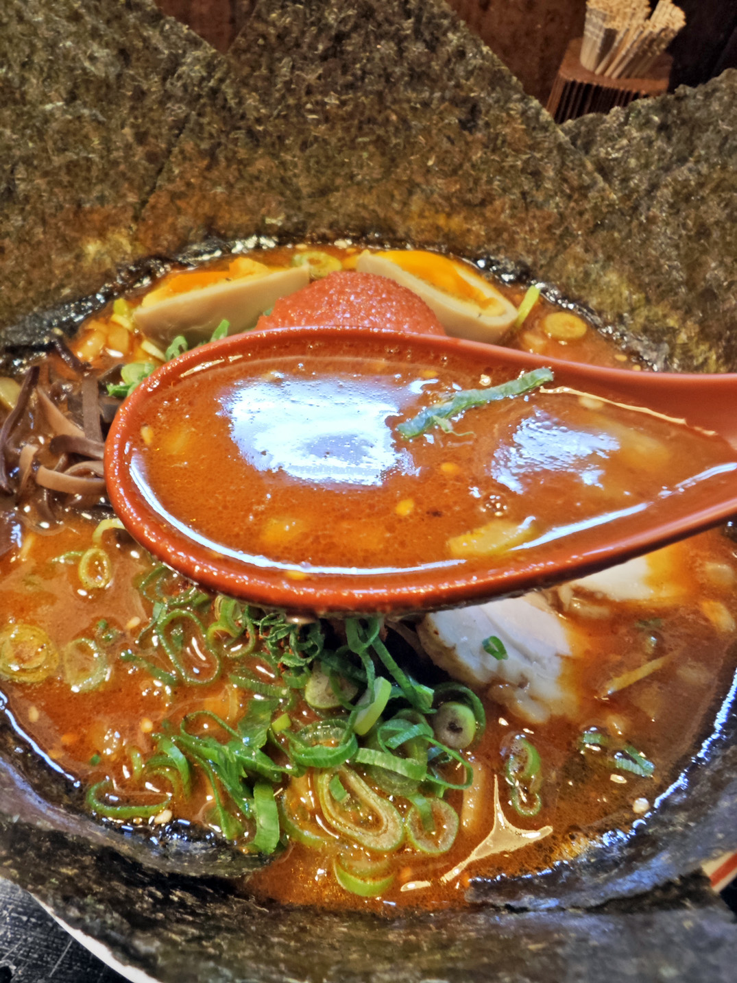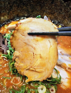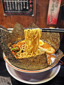 ベースのスープ自体は、そこまで辛くはありませんでしたが、表面に振ってある唐辛子粉をスープに溶かし込んでいくと、かなり辛さが増しました。