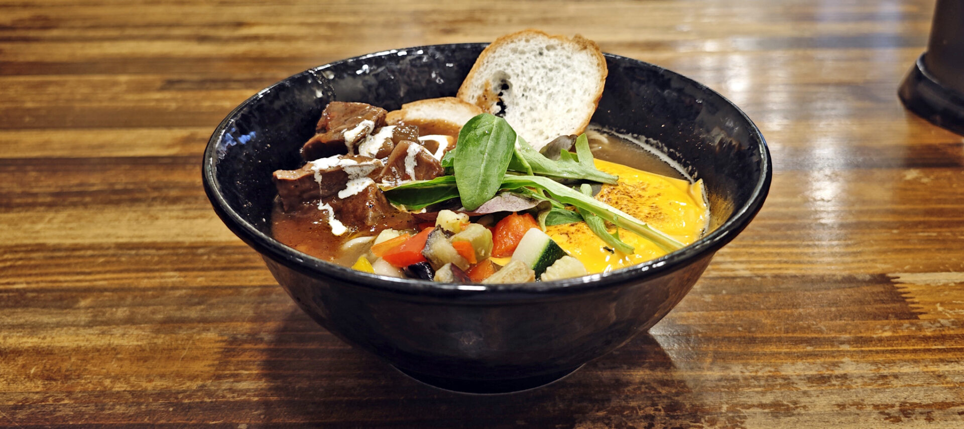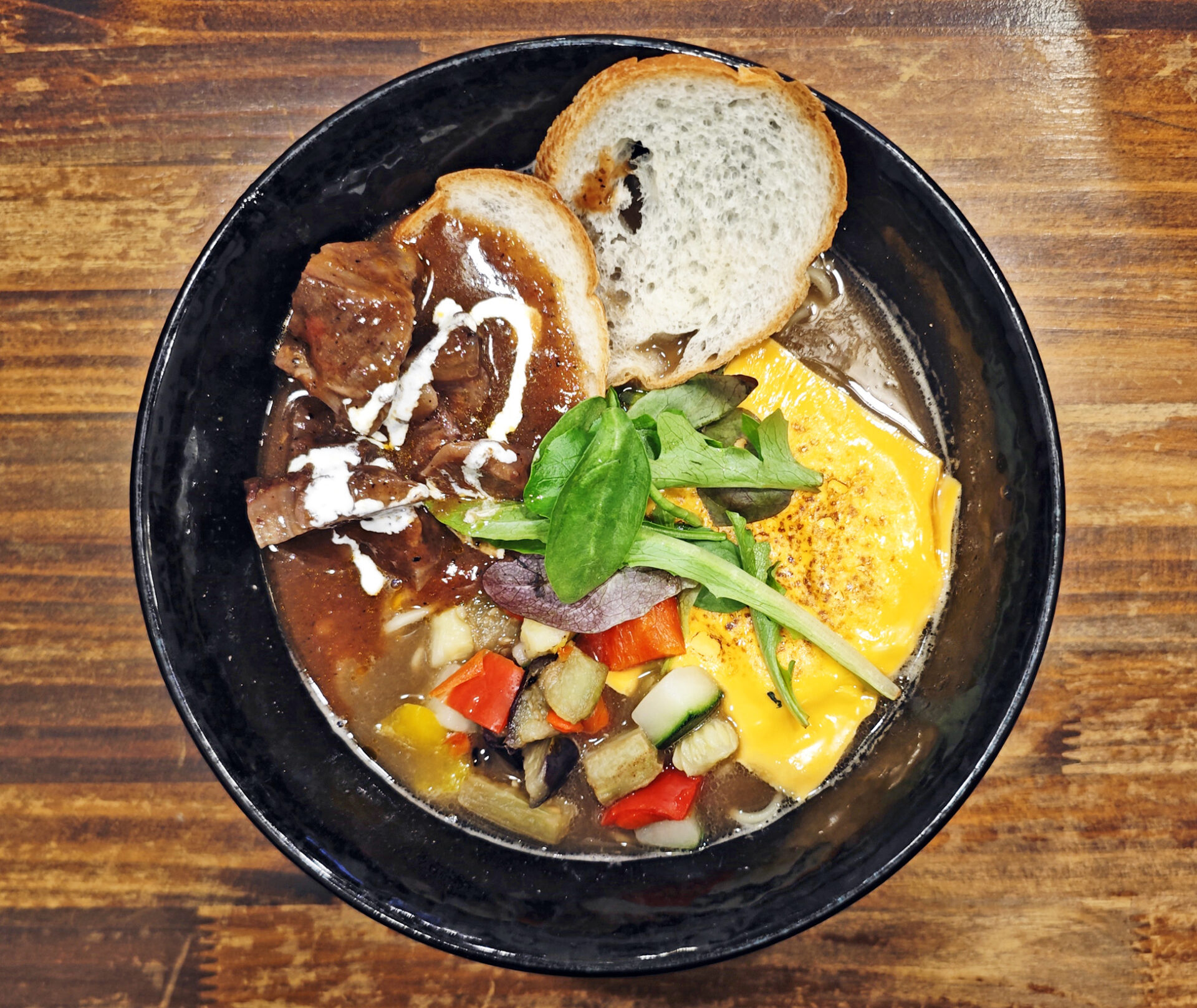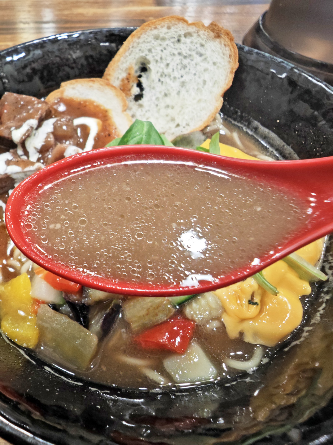 途中で、その煮込みソースをスープに溶かし込めば、表情は一変。