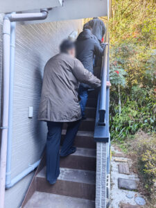 お店が開店すると、行列の前の人から順番に2階の店舗の方に上がっていきます。