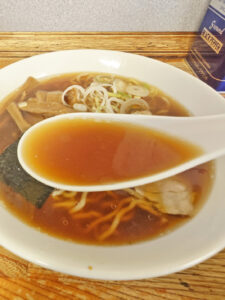 スープは濃い色をしているが、意外にも口当たりは穏やか。