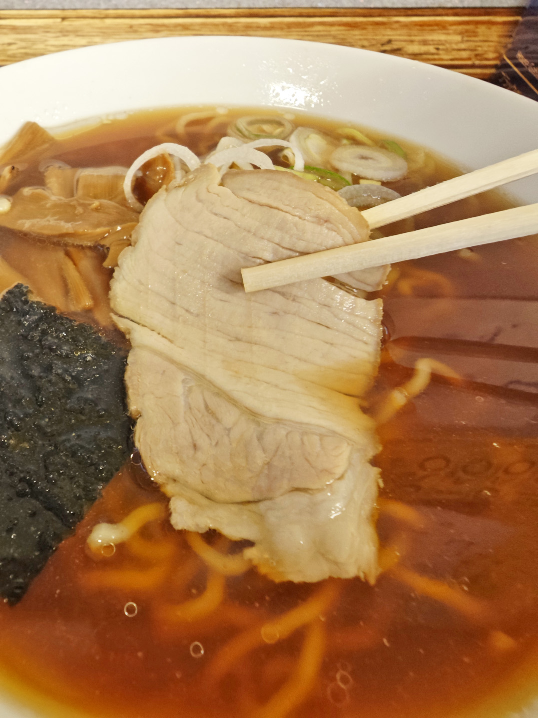チャーシューは、味が抜けたようでいて、噛みしめるほどに肉の繊維が感じられる少し固めの仕上がり。
