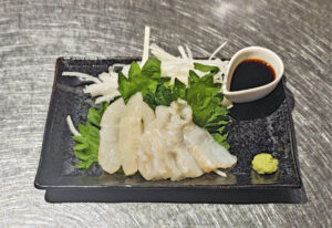 今回の限定麺には「らぁ麺 鶏と鳴く。」でも”初めて”というお刺身が付いてきます。
