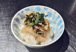 「鯛味噌茶漬け」は、味噌だれを和えた鯛の切り身に、紫蘇や白胡麻をまぶしてあります。