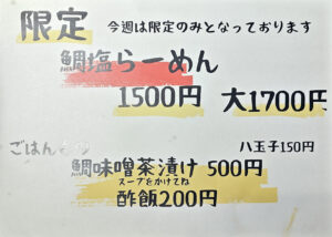 「鯛塩らーめん」と「鯛味噌茶漬け」を頂きます。