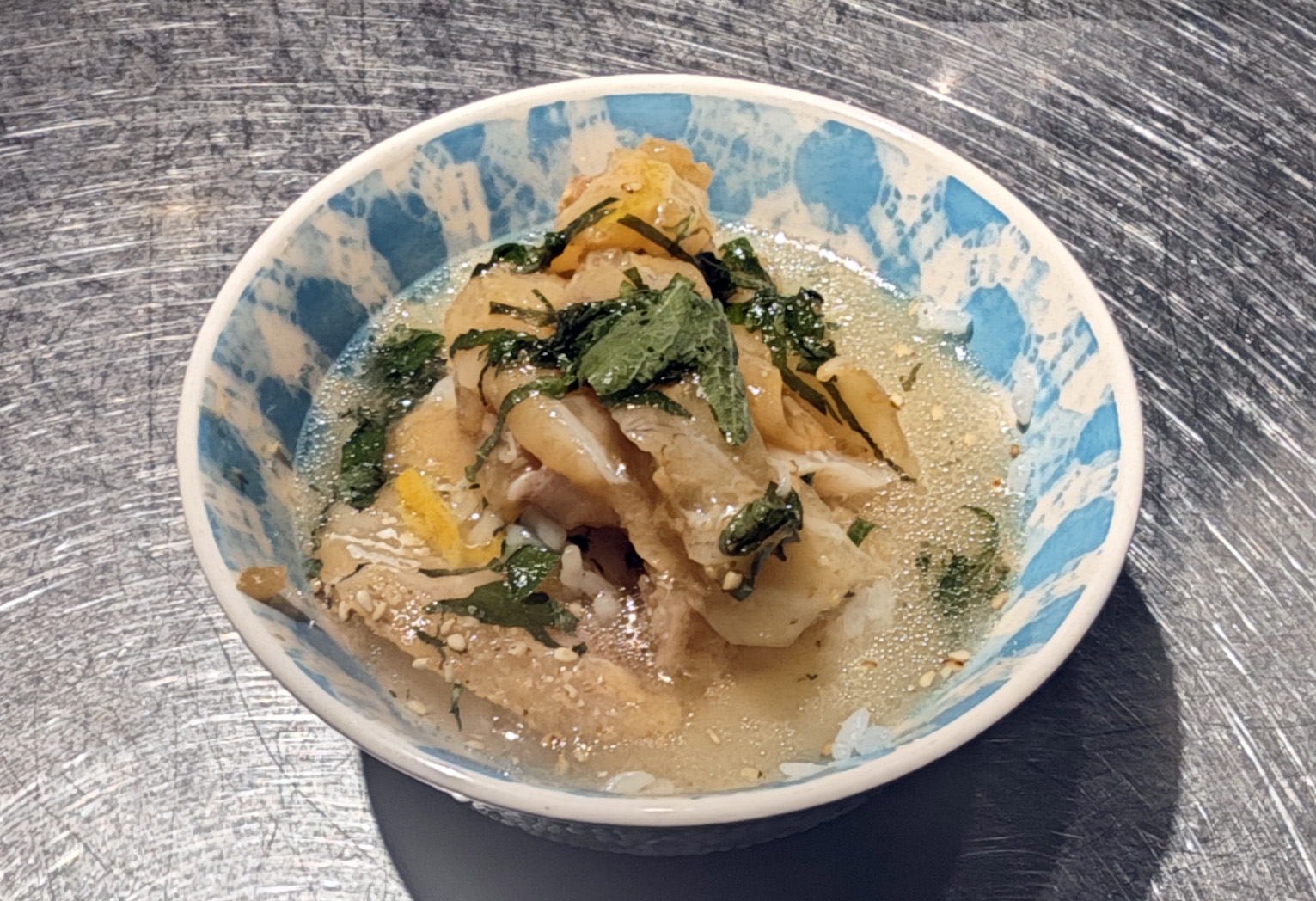 残った鯛スープを浸すと「鯛味噌茶漬け」の完成です。