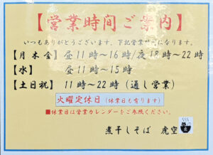 営業時間は、前回の訪問時から少し変更になっていました。