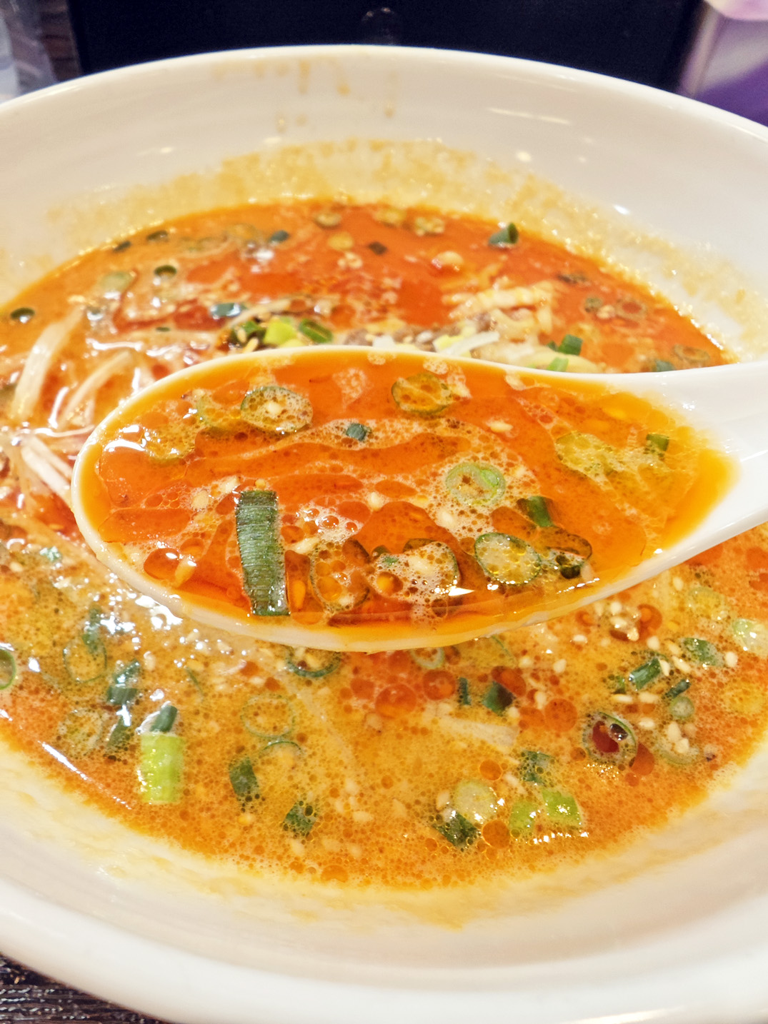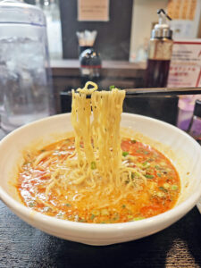 練り胡麻のまろやかなコクがスープ全体を包み込み、後味は驚くほどすっきりとしており、最後の一滴まで飲み干したくなる絶妙な仕上がりです。