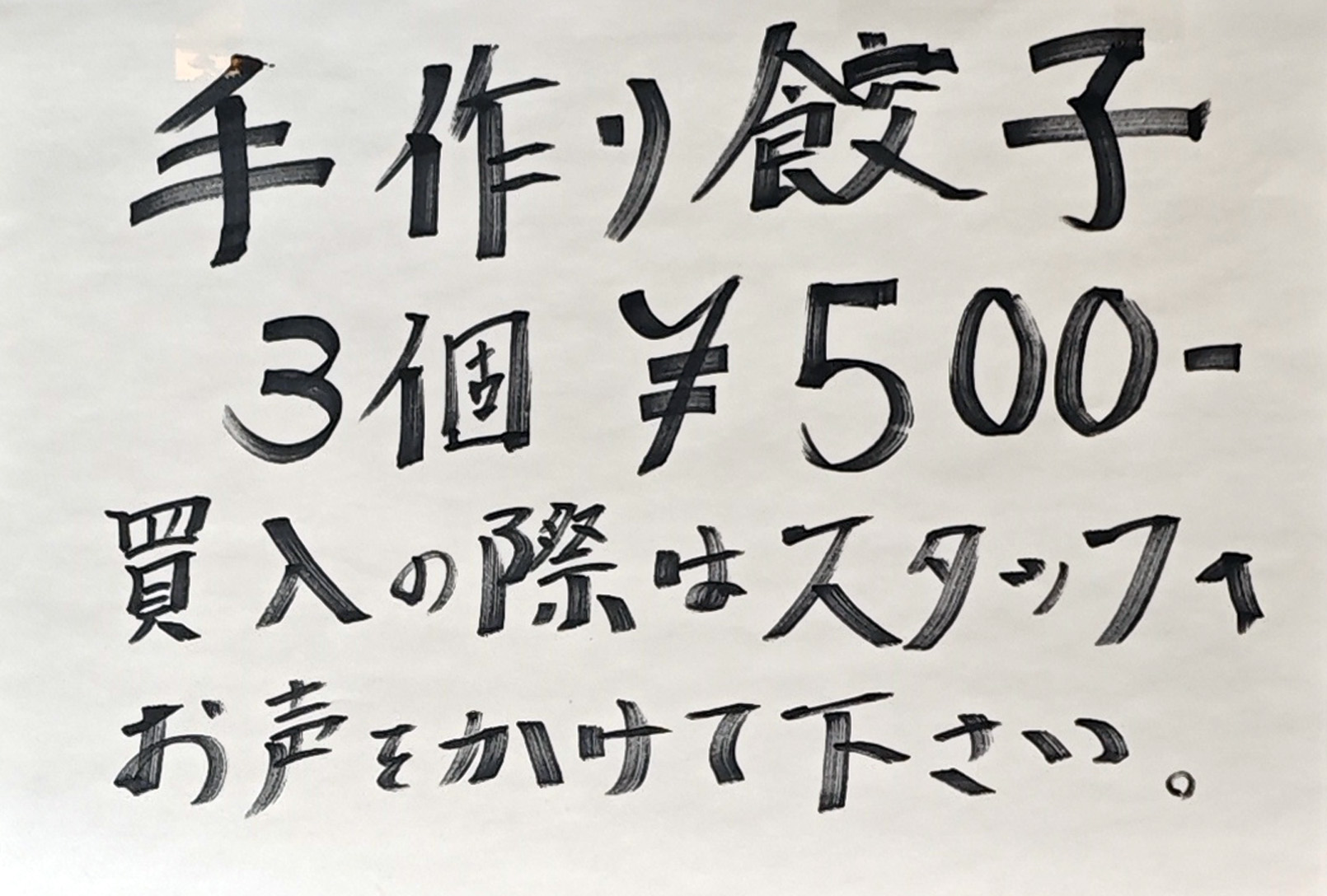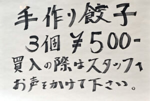 前回訪問時にはなかった「手作り餃子」が気になったので、そちらも購入。現金対応です。