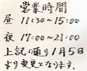 今年の1月5日から営業時間が変更になっています。