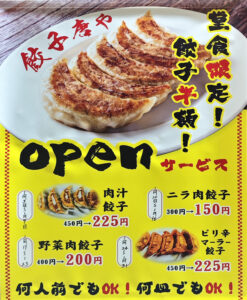 新規オープンにつき、ただいま餃子半額キャンペーンが開催されていました。