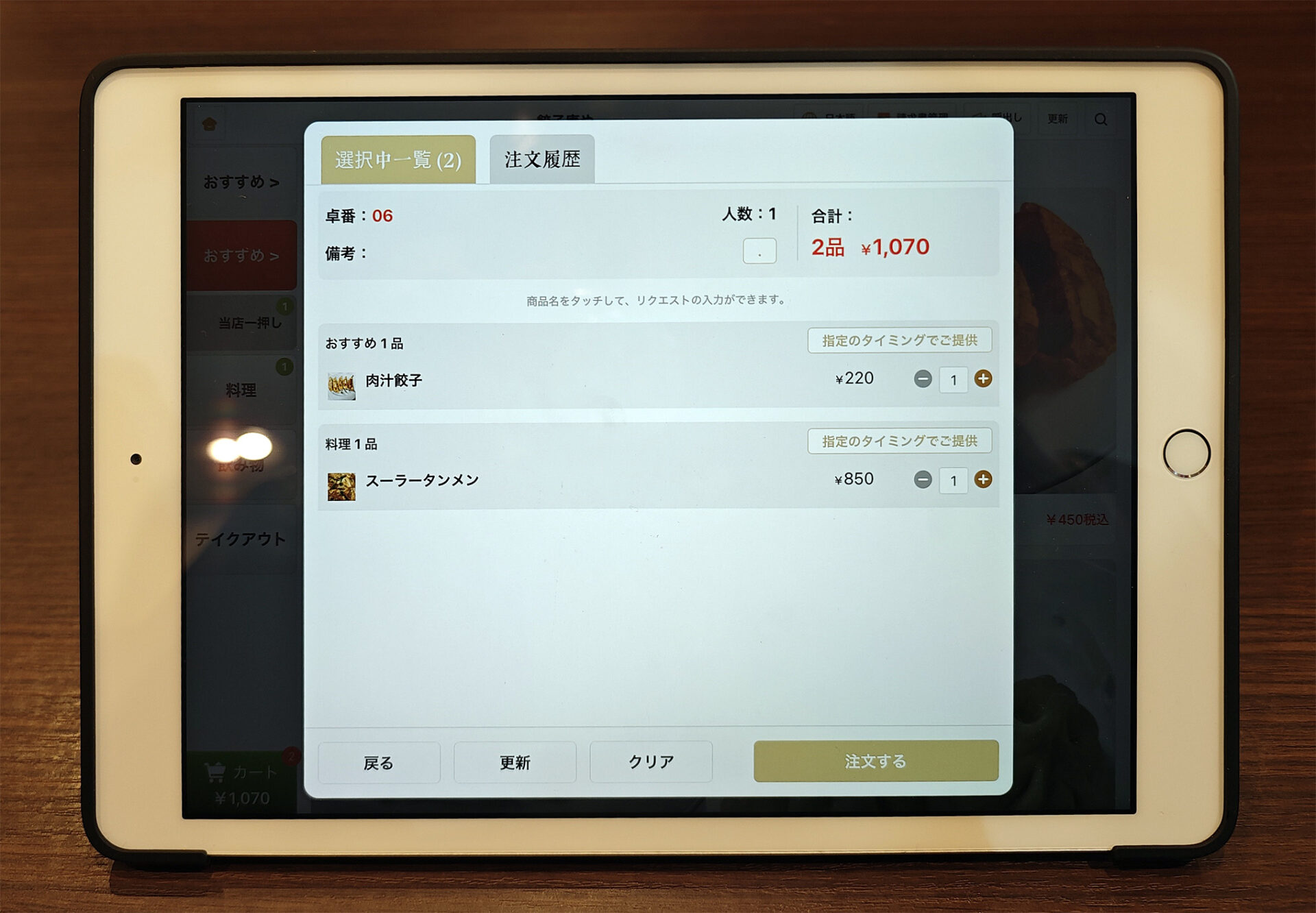 半額(1円単位切り捨てで220円になっていますね)になっている「肉汁餃子」も、もちろん注文します。
