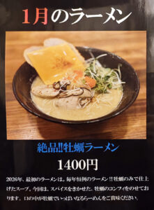 さて、年が変わって最初の限定麺は「絶品!!牡蠣ラーメン」です。