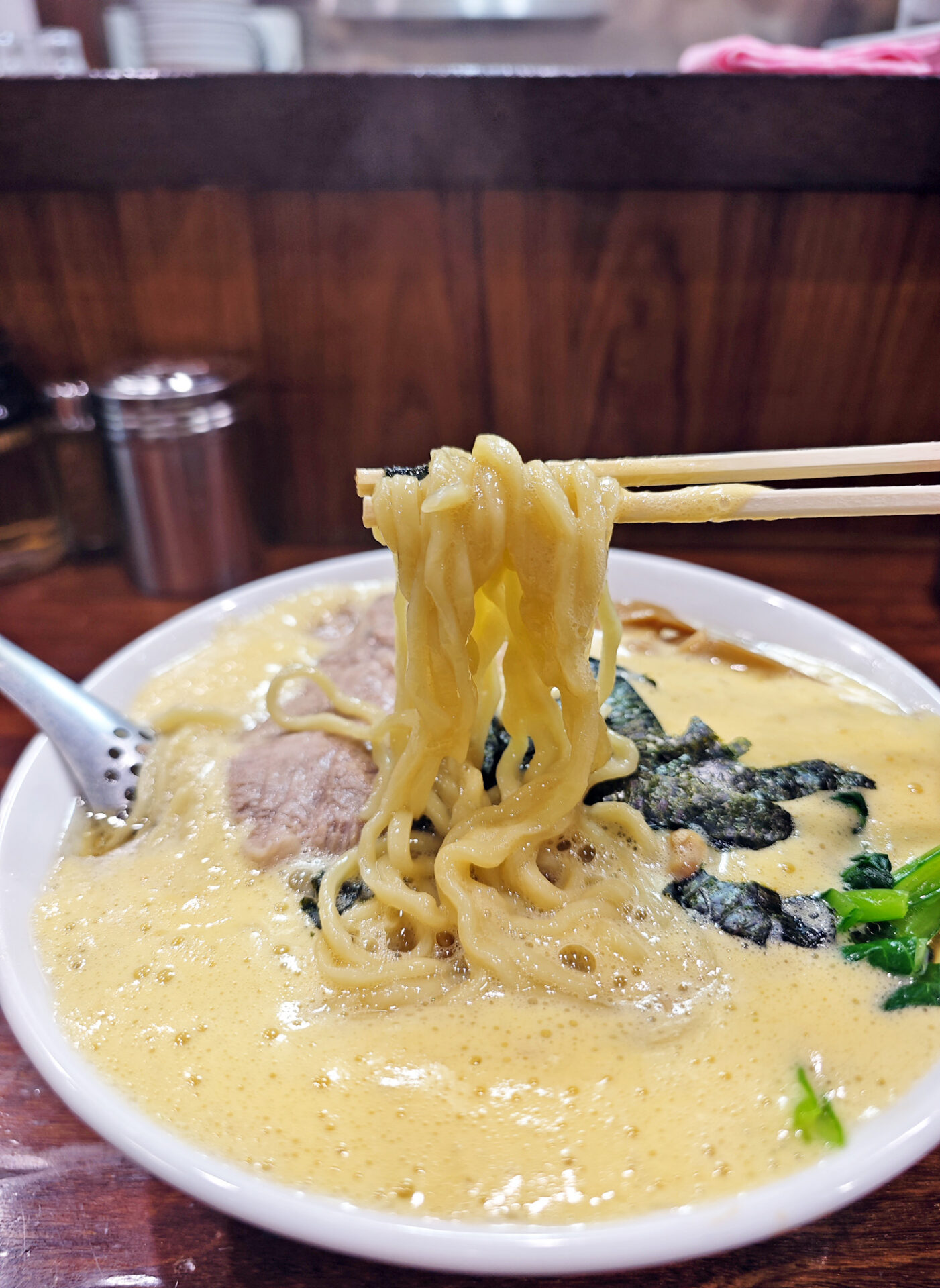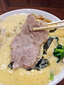 まず目を引くのは、堂々と横たわる大きなチャーシューです。