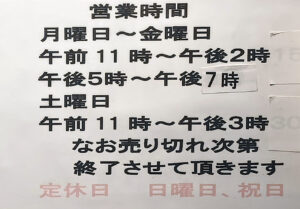 営業時間は、特に変わらず。