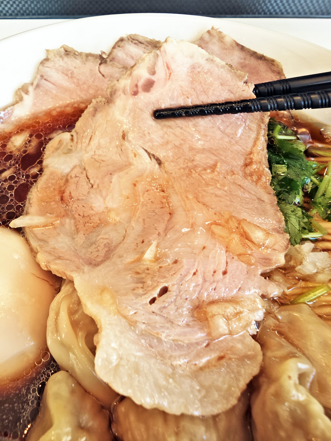存在感を放つチャーシューは、低温調理ならではの桜色が印象的です。