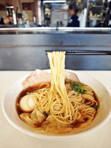 スープとの絡みが非常によく、啜るたびに小麦の香りとスープの旨味が一体となって口の中に広がります。
