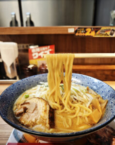 もっちりとした弾力が心地よく、スープや辛みそをしっかりと受け止めます。