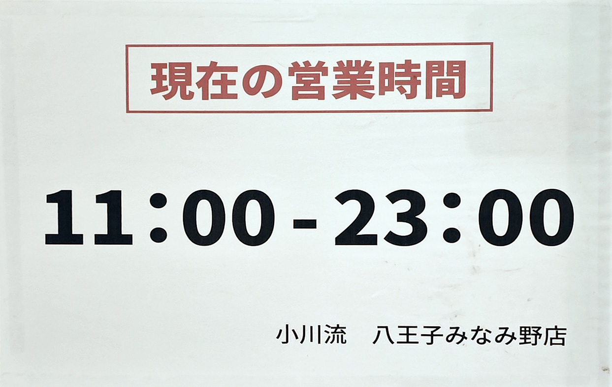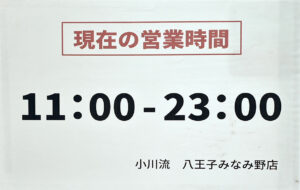 片倉町にある「小川流 八王子みなみ野店」は、通し営業で、夜の11時まで営業されている、とても有難いお店です。