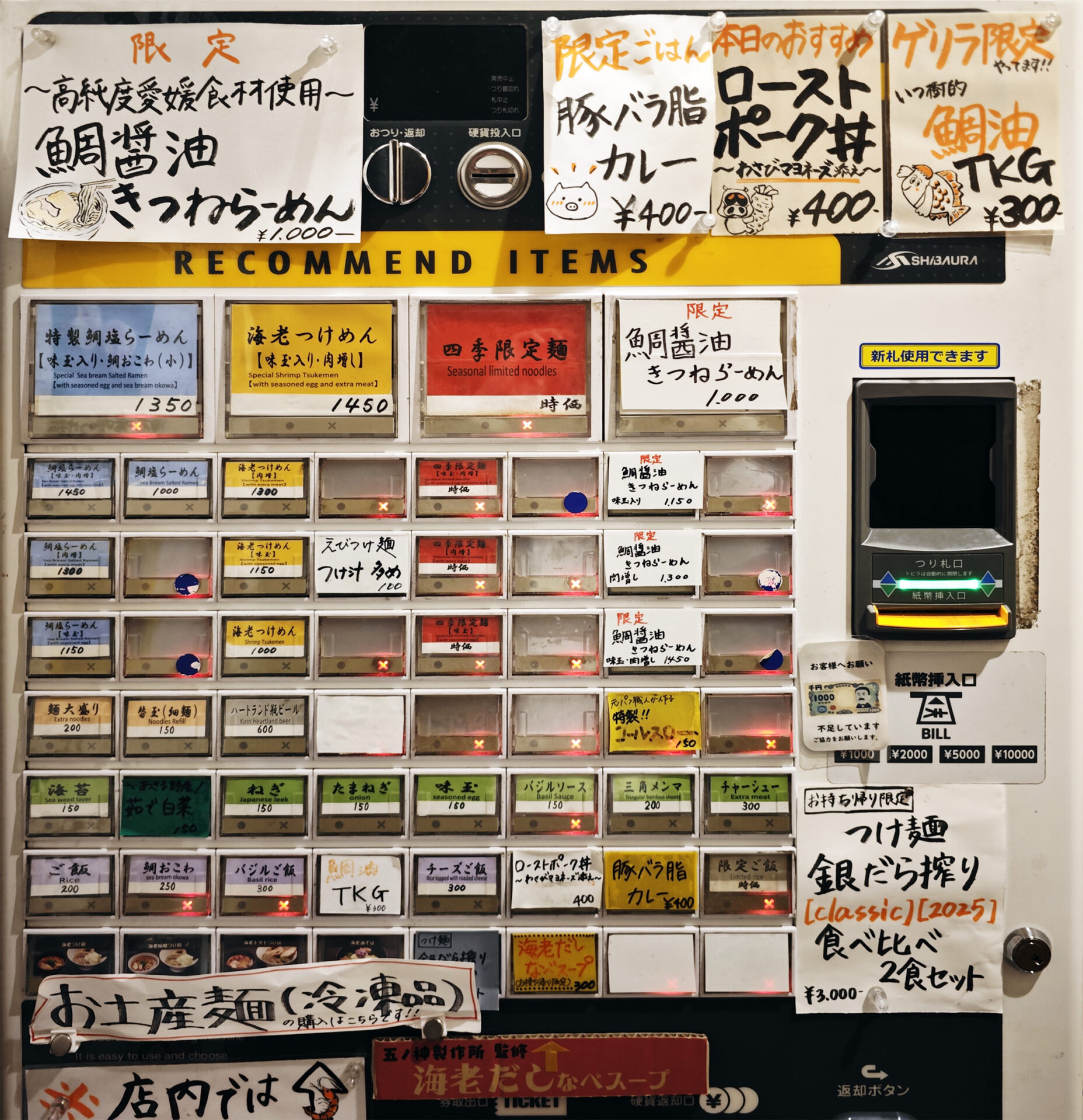 予定通り、限定「~高純度愛媛産食材使用~鯛醤油きつねらーめん」の食券を買います。