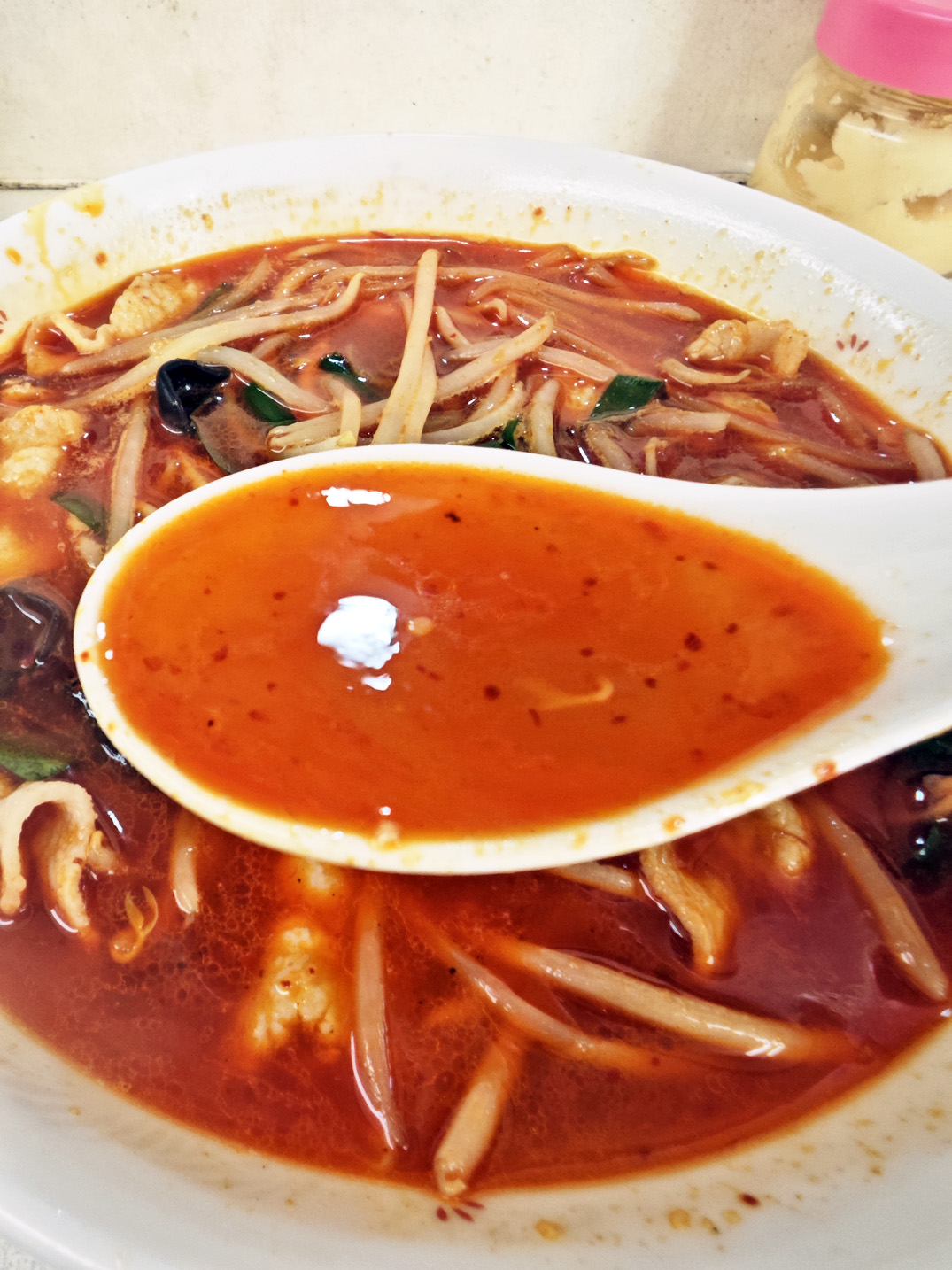 スープを啜ってみると、辣油の香りと鋭さのある辛味がありました。