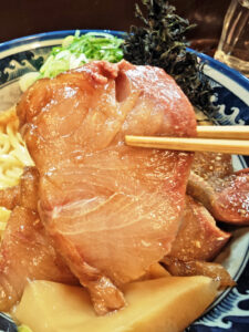 トッピングの主役は、麦味噌を使って丁寧に漬け込まれたブリ。