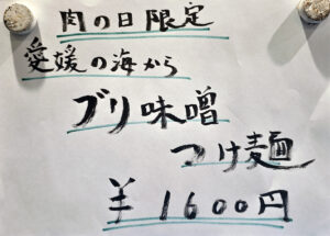 限定「愛媛の海からブリ味噌つけ麺」1600円@らーめん五ノ神精肉店【あきる野市】