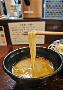 小麦の香りが豊かで、濃厚なスープをしっかりと受け止め、絡みつくことで一体感のある味わいを生み出します。
