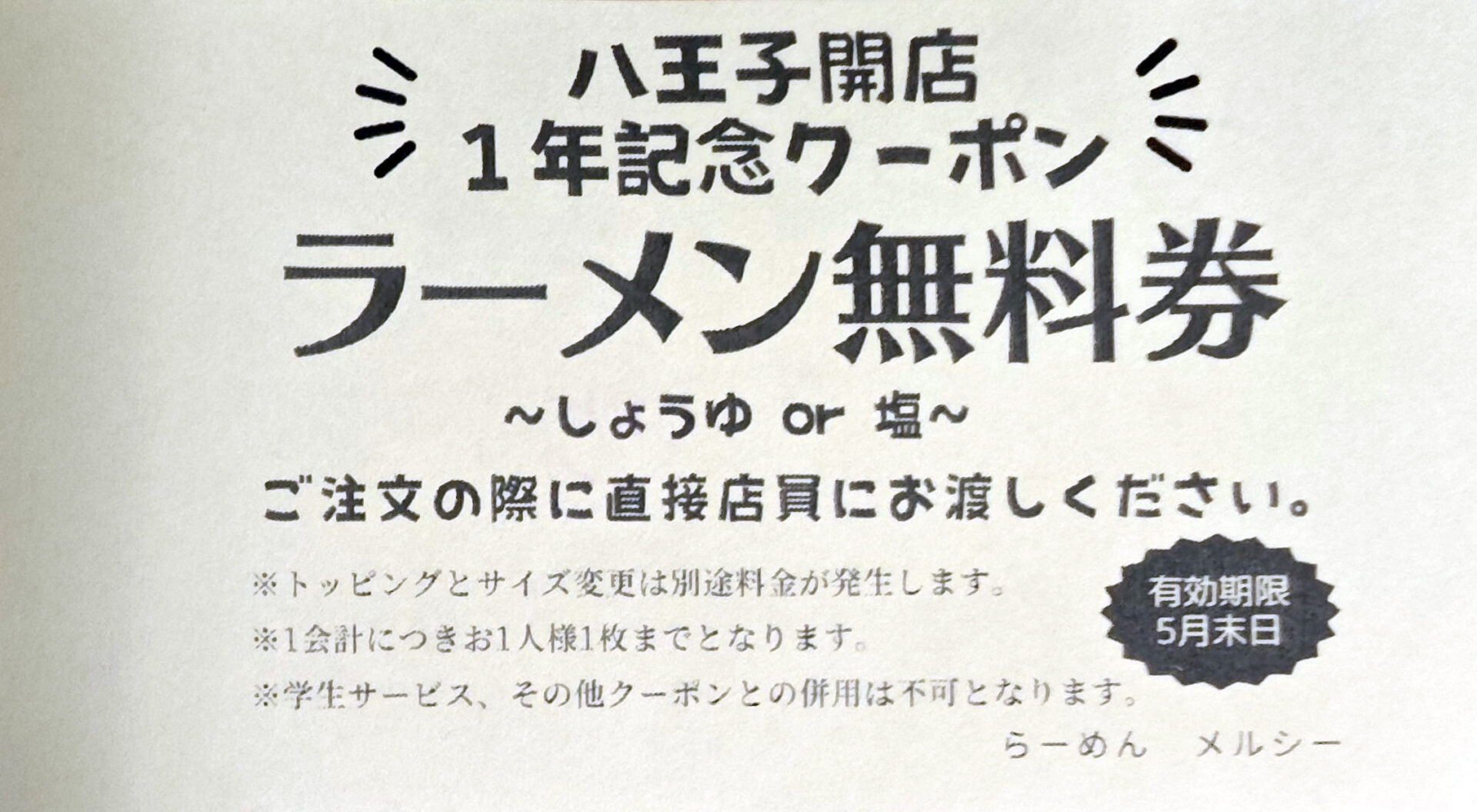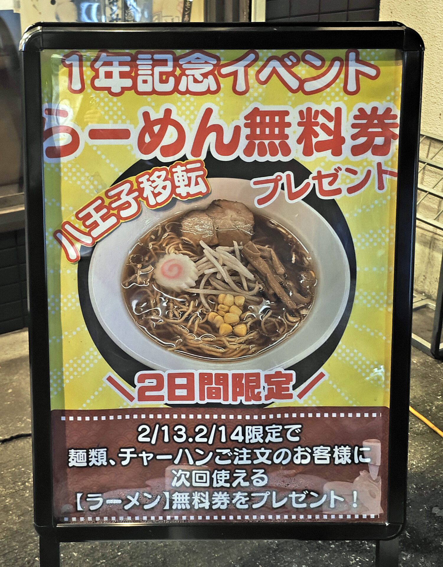 1周年記念のラーメン無料券をゲット!