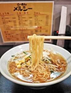 備考:多くの学生さん、多くの著名人に愛された新宿早稲田のメルシーが唯一暖簾分けした昭島メルシーが八王子へ移転。早稲田メルシーと昭島メルシーのオーナーは親戚。新しい八王子メルシーのオーナー(2代目)も親戚。味は引き継ぐとのこと。学生限定、麺大盛無料。