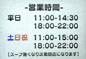 現在の営業時間です。
