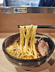 弾力のある歯ごたえが心地よく、スープをほどよくまといながら、具材との一体感を生み出します。