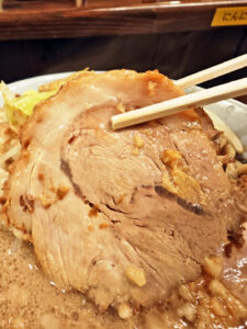 二郎インスパイアらしい迫力のある佇まいに、思わず箸を持つ手にも力が入ります。
