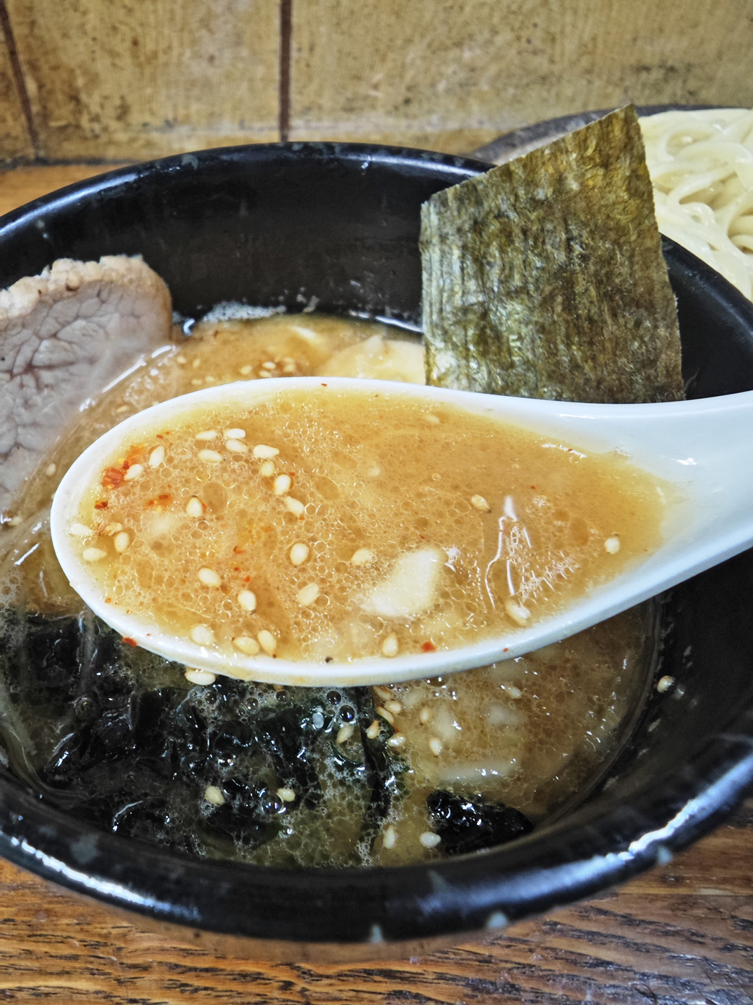 つけ汁は、甘じょっぱい味付けをベースに、唐辛子の穏やかな辛味が全体を引き締めています。